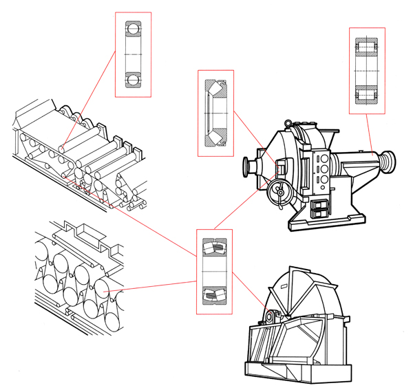 現(xiàn)代造紙機(jī)械的運(yùn)行特點(diǎn)是生產(chǎn)運(yùn)行高度自動(dòng)化,體現(xiàn)出高速、高質(zhì)、高效及對(duì)環(huán)境友好的特點(diǎn)。要求軸承在承受重載、高溫、高速的條件下能夠長(zhǎng)期可靠地運(yùn)行。根據(jù)造紙?jiān)O(shè)備不同部位的應(yīng)用特點(diǎn),開(kāi)發(fā)了專(zhuān)用系列產(chǎn)品。